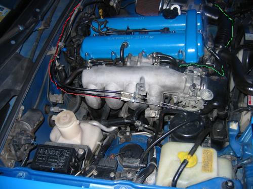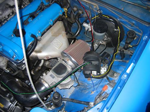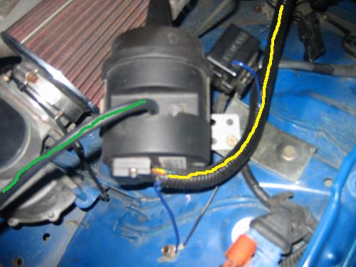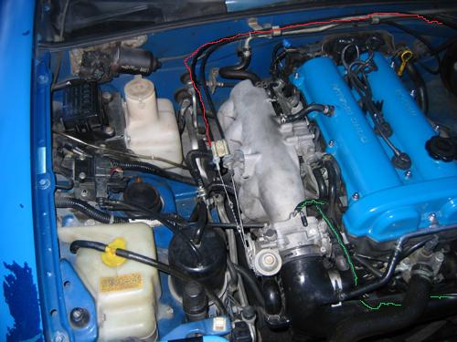 green => follows intake and connects to it i believe