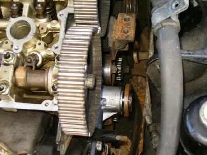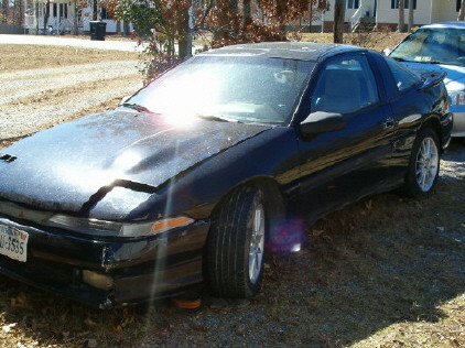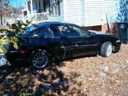 I have good and bad news. The good new is i finally after like 3 months saw the car and know exactly where it is at. The bad news is that it's a damn civic hatchback behind the car so i don't know how i could get it towed with the civic in the way.I am attaching some pics i took of it, what i am trying to figure out is how can he know the pistons are bad,without taking the head off? In the picture the only thing that he had really taking off the motor was the belts and valve cover, i know it might be possible to see the piston when you take the spark plugs out but is it enough to see damage? But anyway here are some pics of it. My next step is to basically see if he will call me (doubtful) and find a way to move that damn civic out the way. And to top it off he had like 3 boxes of civic parts just sitting in my car like it's pod or something,lol. I will possible try to go back tommrow and see if the civic can be moved,or if anybody will be at home because nobody was there today, I would like to thank everybody that has helped me this far especially LOCO and 4g63nt if they wouldn't of went out thereway to help me i don't think i still would not know where it si today,thanks again everybody.