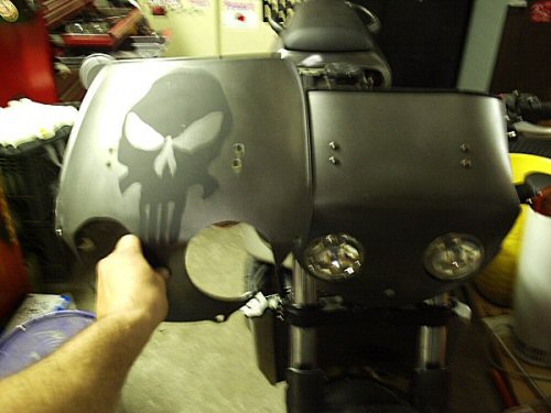 The screen with the skull was the old one...I like the skull, just don't want the Punisher skull (Steve can use it if he wants!). Too many people thought I was trying to make a Punisher theme bike, which I wasn't. I will come up with something else, not sure yet. Hell, I'm not even sure if I like the color yet, might be repainting it again.