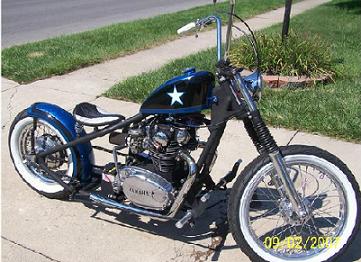 yeah, jeff's is slightly cut up, but it's just got struts in place of the shocks, not a real rigid frame. that bike with a normal rigid rear, like mine or something, would look killer, and would be cheap to do. the wheels, tank, front end, brakes, etc, are all stock xs.