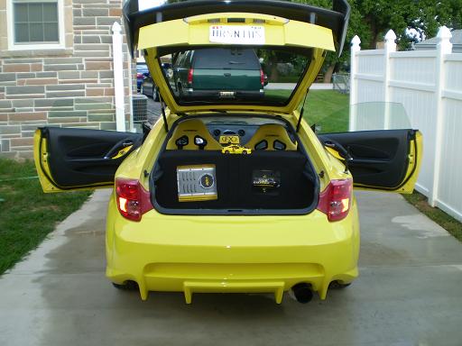 Interior-Corbeau racing seats, double din tv head unit, custom system with 500 watt amp and capacitor. 2 12inch audio bahn subs mounted in glass enclosure. Custom mounted fish tank with fake fish in it along with 2 lava lamps and a dvd player. Everything works in the car! I put carbon ,door sills, floor matts, radio bezel and other misc stuff. It has a tenzo r steering wheel which is why the air bag light is on. I know im missing some stuff but its ok pictures say 1000 words