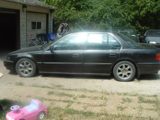 91 Honda Accord LX h23 motor swap SI short tranny mugan headers MSD Cap, Coil, Wires Adjustable Fuel Regulartor Short Ram Intake 16' Wheels H and R Springs in Front Coilovers in rear Pioneer Cd Deck, 12' Sub and Box