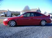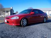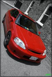 The car is a Red 1999 Honda Civic Si,