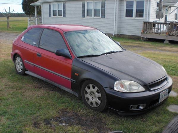 Ok I have a 98 civic hatch, Roma Red, with black front clip just did 2000 front end on it.