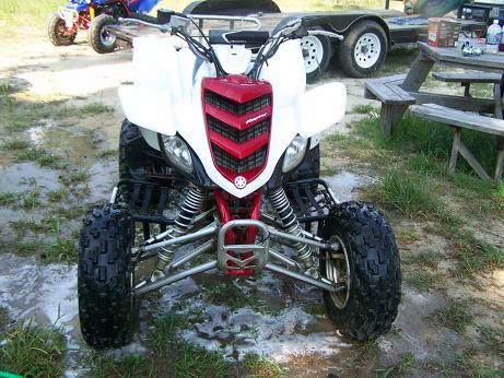 This is my Raptor 660R, it runs strong and looks great. It has a few mods such as; DG nerf bars, White bros exhaust, Jet Kit, MSR bars, and a 6 pack rack, relocated reverse to thumb switch, ebrake switched to raptor 700 style. This thing is flat out fast, it is faster than my brothers raptor 700 with a power commander and a pipe. This is not a beginners bike. It is white and red with a red powder coated frame, it has normal wear but other than that is a great looking and running bike. I am asking $3500 obo. im pretty negotiable but NO low ballers please.