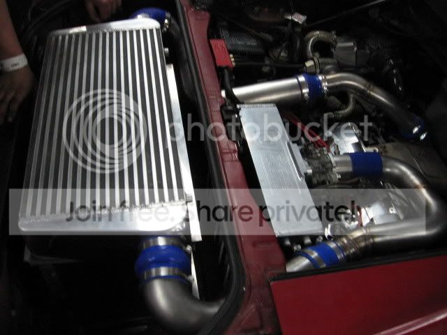 a greddy turbo kit- upgraded to an ATS dp and ATS external wastegate setup, ATS rom tuned ecu, upgraded oil return, 550s, and an ats ported fuel rail. Apexi intake, greddy typ-s bov, apexi N1 exhaust, and custim trunk mount, and kirko poly motor mounts.