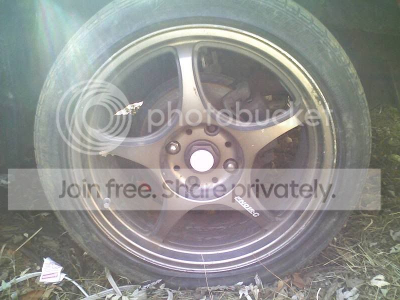 17x7 38ET (i think) 4x114.3 bronze 5zigen fno1rc's. good condish, no real bad curb rash, a few very small dings, otherwise good. one wheel has some rash about the size of a dime on one of the spokes in the first pic. crappy 215-45-17 tires. all centercaps included. yea, theyre a little dirty from sitting around. $550/obo