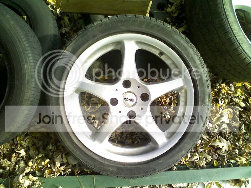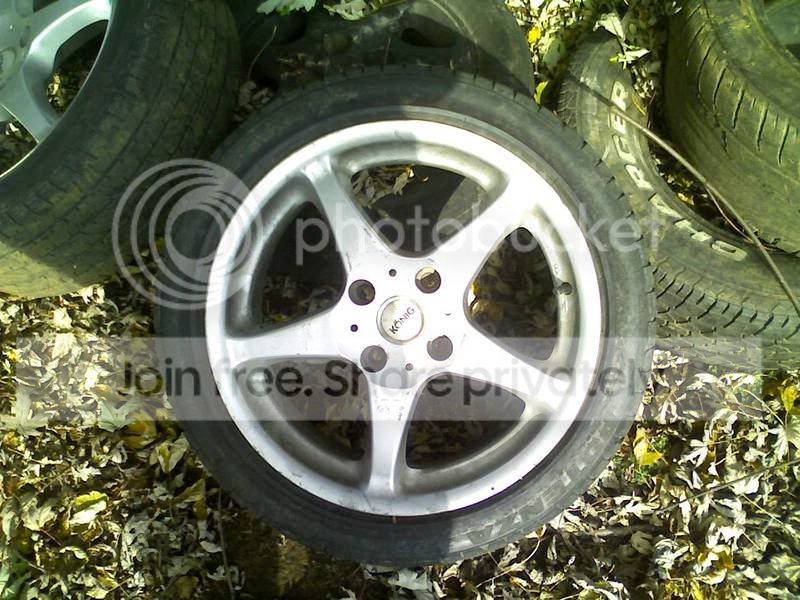 2 (two) 17x7 4x114.3 konig idunnowhattheyare. good drift wheels. some curb rash. used. 40ET i believe. decent bridgestone 215-45-17 RE92 tires. centercaps. $150 for the pair