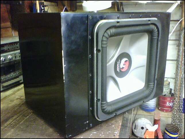I pulled this out of my car today because I was tired of it taking up room in the truck. This is an aluminum box I made at work. It is very strong and sounds good. When I was making it I wanted something compact, with everything connected to it, that I could pull without much trouble if I decided I needed the space in there for something. It has a newer 12" Kicker L7 sub, xplod 1,000 watt amp, and a new 1 farad capacitor. The box was painted black and has some scrapes and the amp was powder coated gloss black. It is all wired and ready to be installed to power and a signal. Make me a reasonable offer. All components in perfect working order.