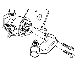 Remove the 2 bolts from the coolant outlet.
