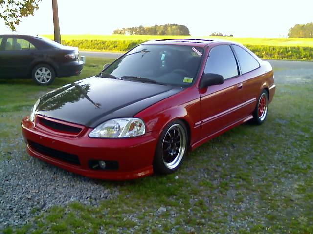 I have a 97 ek coupe red wit a 00 si conversion. B18 b1 wit a gsr tranny, type r header, 2 1/2 inch exhaust, stock B16 clutch and flywheel, password jdm whale penis.