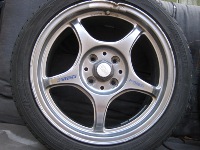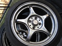 What you get - 4 wheels w/ tires Tires are DONE! Two could be used, two have steel showing through them. PLUS you get 4 center caps which are $$$ by themselves